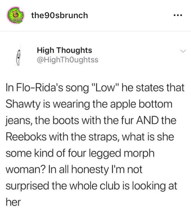 So with all the privilege of living in the modern age, it’s time to embrace being the grey-haired Cardi B listener, in her twenties who wears dental braces and an orthopaedic insole. WHAT A FITTIE.